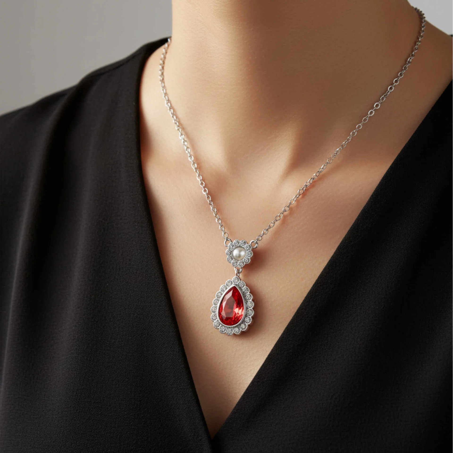 Diese elegante Kette verleiht Ihnen kaiserliche Ausstrahlung – feminin, anmutig und von zeitloser Schönheit. Der fein gefasste Tropfenanhänger zieht die Blicke auf sich und lässt Sie in edlem Glanz erstrahlen – ein Schmuckstück, das Stil und Raffinesse vereint.