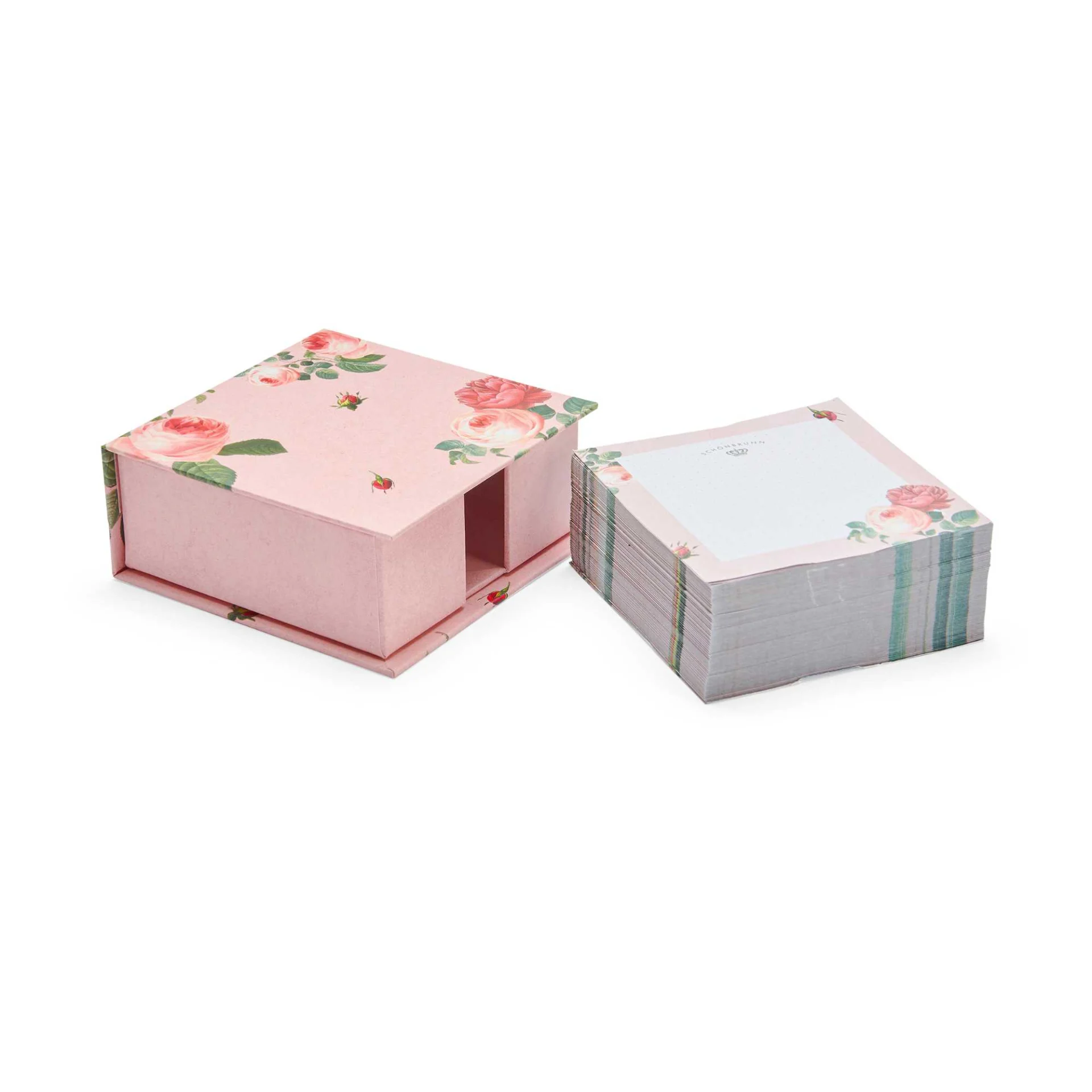 Zettelbox aus stabilem Karton; Deckel mit Magnetverschluss; 200 Notizzettel beidseitig bedruckt (Vorderseite mit Motiv, Rückseite einfarbig); Maße der Box: 11 x 11 x 4,5 cm